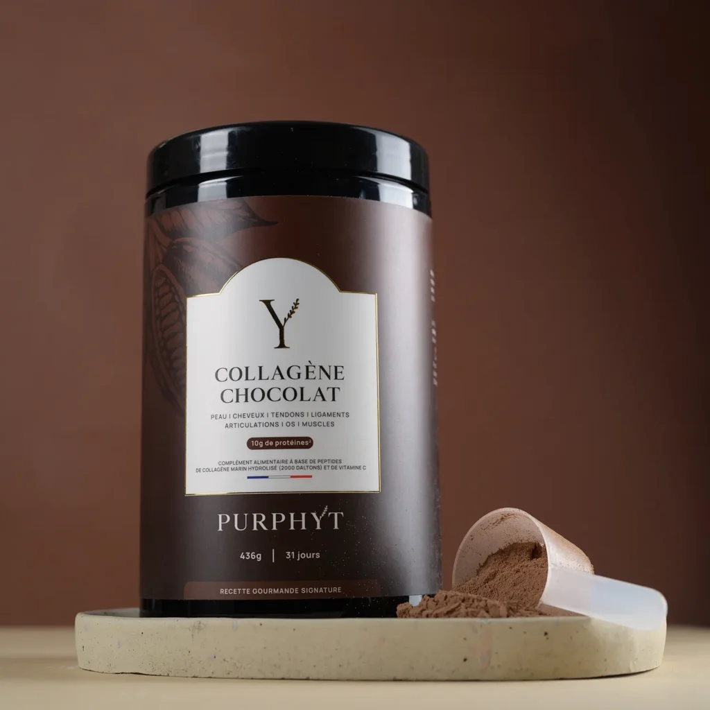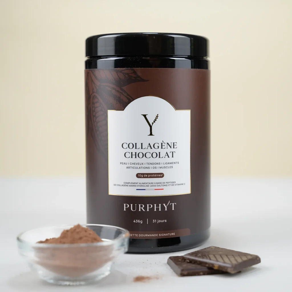 Le Collagène au Chocolat de PURPHYT associe un collagène marin reconnu, labellisé Peptan®️, à du cacao pur et de la vitamine C pour offrir une synergie exceptionnelle qui agit sur la beauté et la santé de l’intérieur vers l’extérieur.