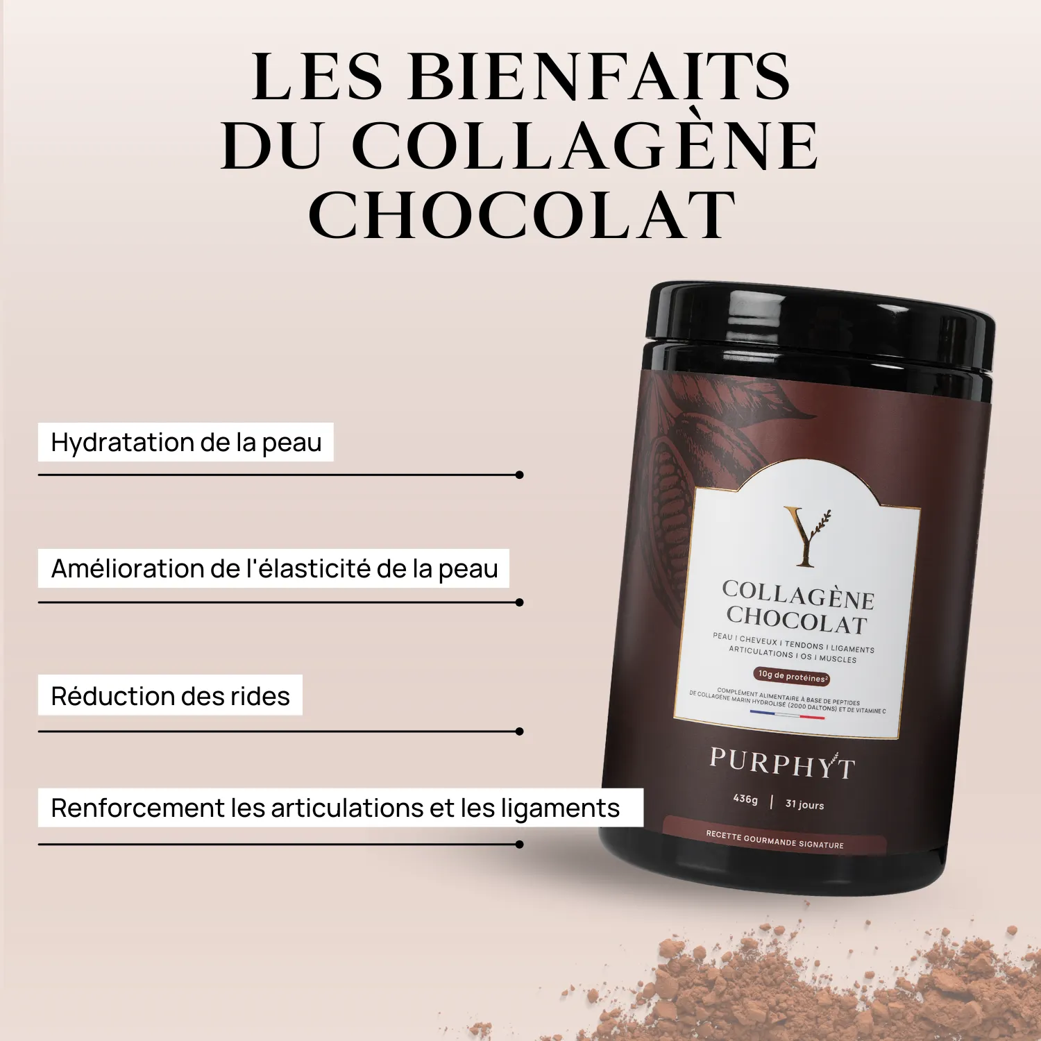 Le Collagène au Chocolat de PURPHYT associe un collagène marin reconnu, labellisé Peptan®️, à du cacao pur et de la vitamine C pour offrir une synergie exceptionnelle qui agit sur la beauté et la santé de l’intérieur vers l’extérieur.