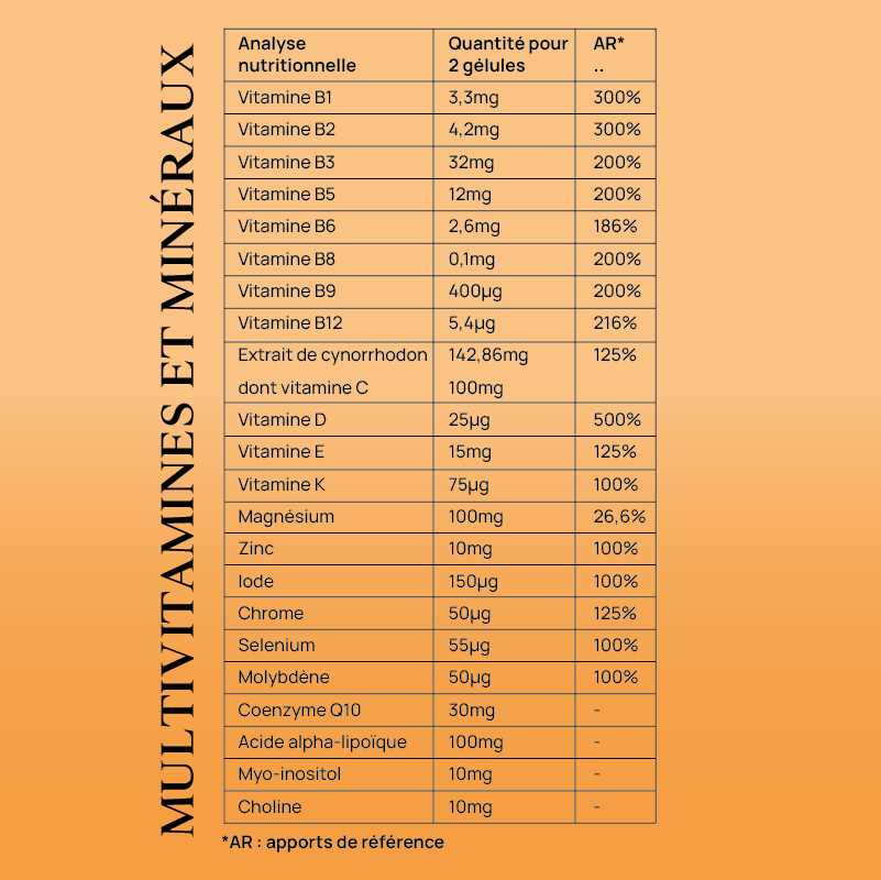 | Analyse nutritionnelle | Quantité pour 2 gélules | AR* |